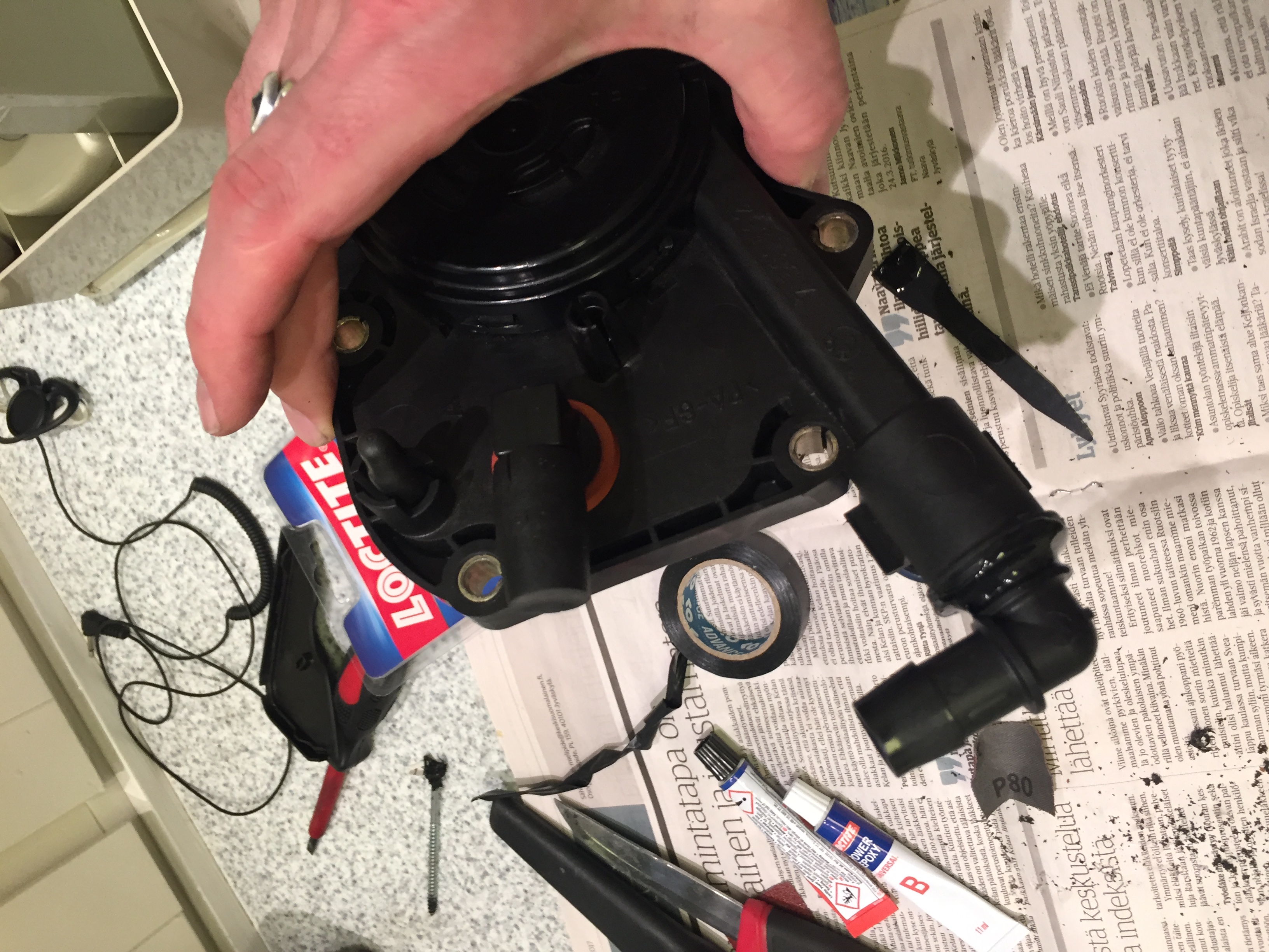 One option is to bypass the stock PCV valve, and install an oil catch tank for residual gases. This can be done by modifying the stock PCV valve, and rerouting gasses to the tank. Other option is to purchase a new rear plate for intake manifold. The oil catch tank was acquired from BjörkMotorsport.