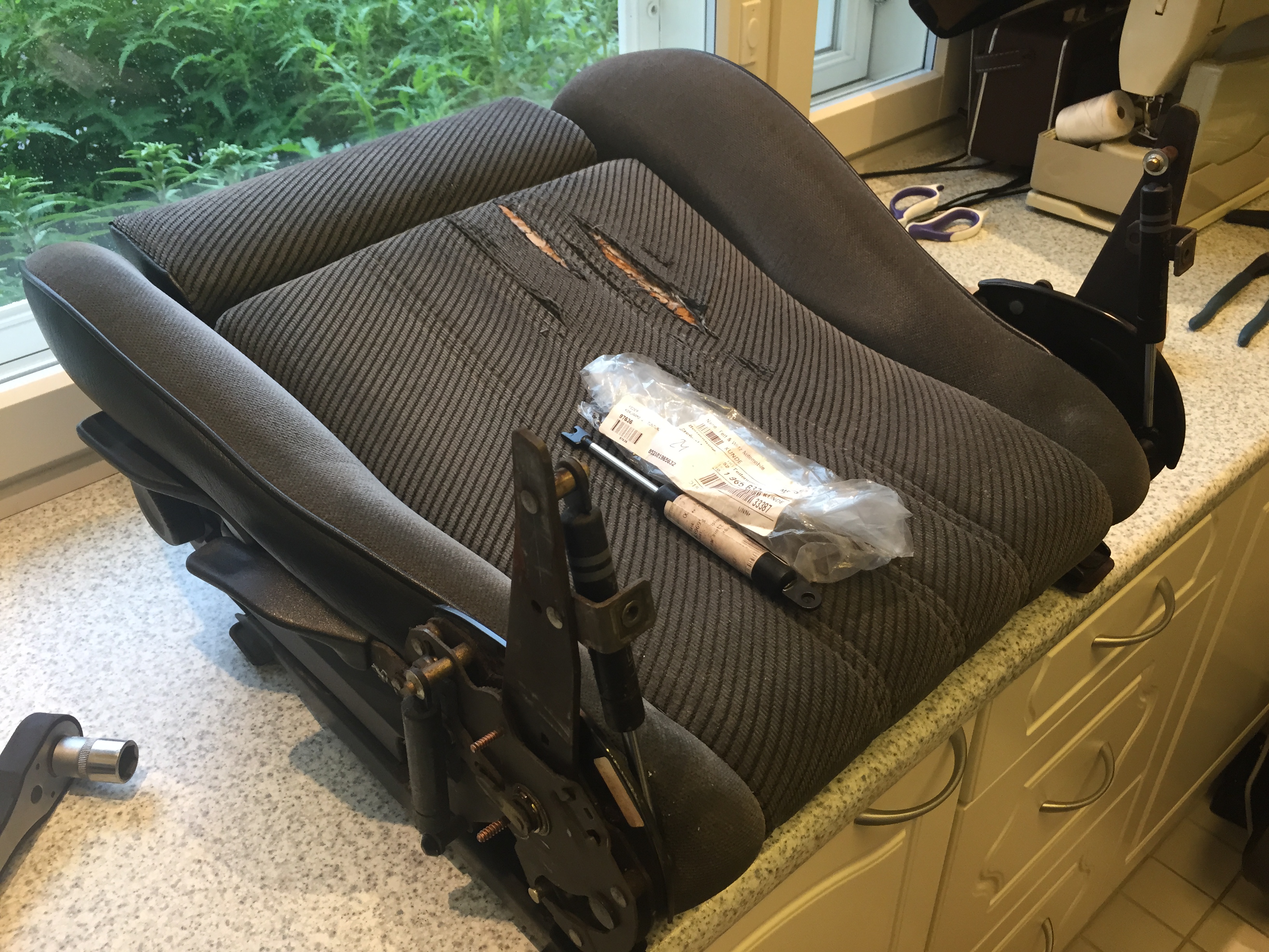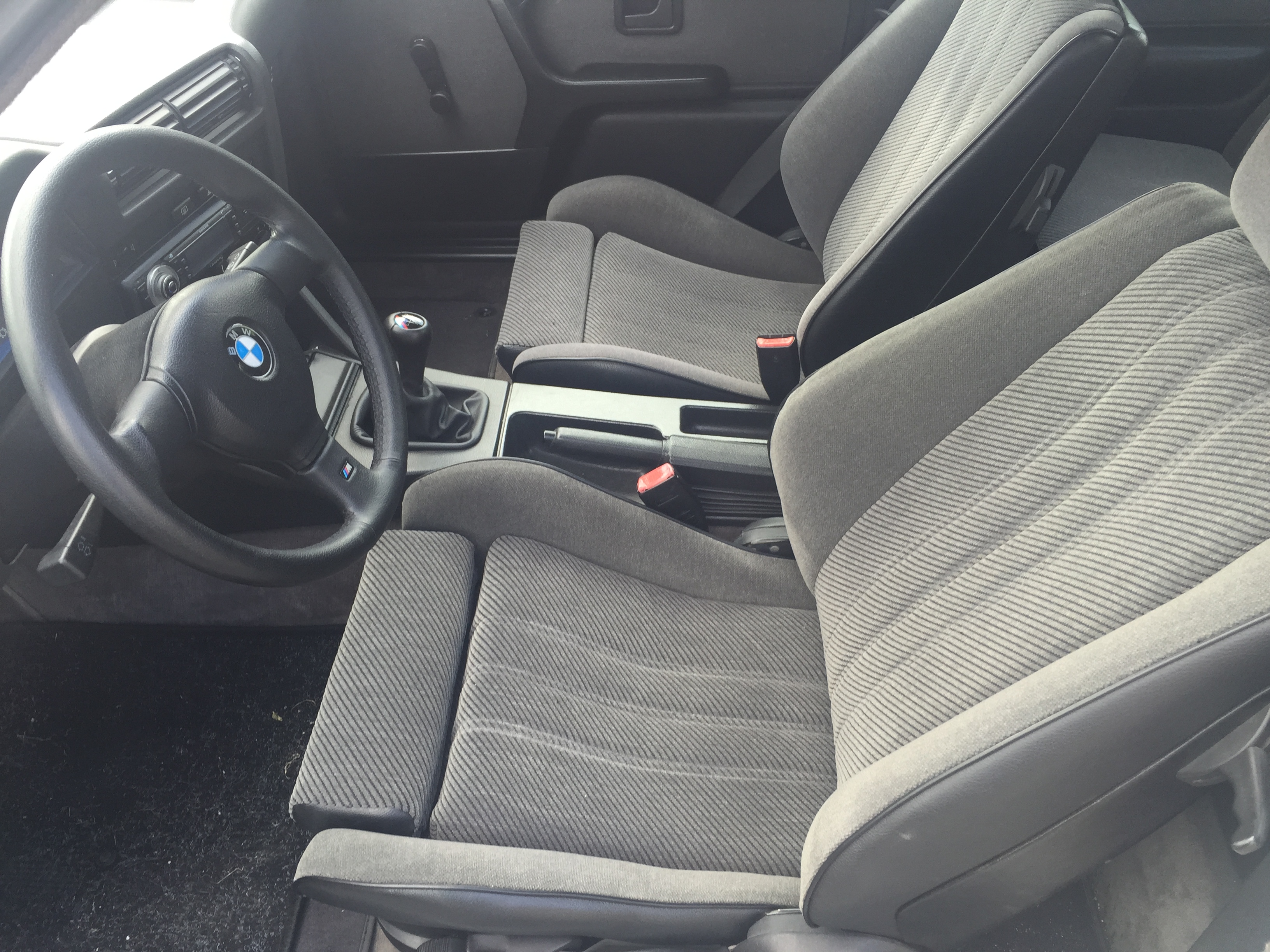 Ripped Driver’s seat is a typical view on E30 nowadays. Because I wanted to keep the factory look, my first task was to find some new fabric. Stock upholstery for M-technic interior is Anthrazit, code 0269. Orginal BMW number is 8106096. It is also advisable to change the pneumatic cylinders. The corresponding part numbers can be found on bmwfans.info. Availability may vary.