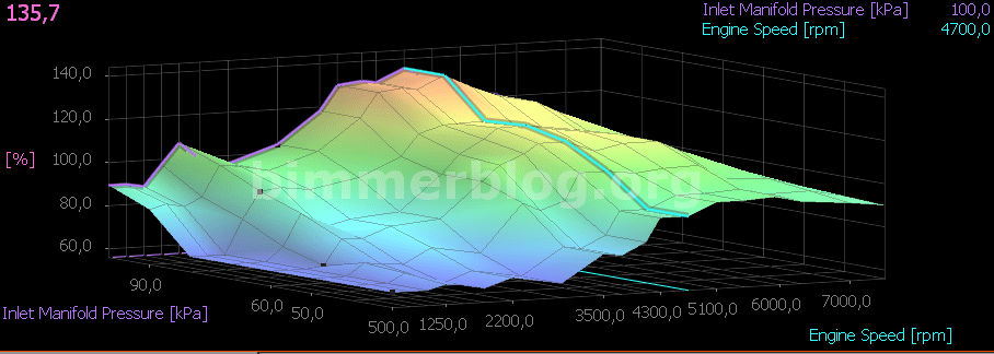 The jaw-dropping Volumetric Efficiency (VE) of 135,7% in naturally aspirated M60B44 engine.