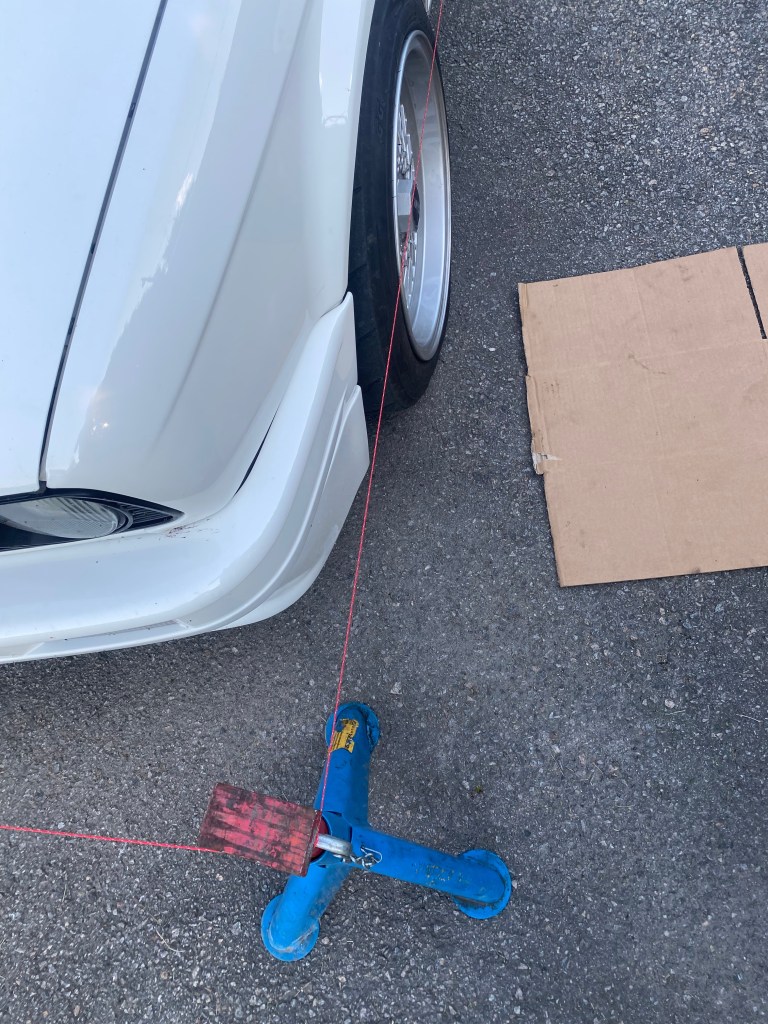 Adjusting toe is surprisingly easy at home garage with pair of jacks, a string and a vernier caliper.